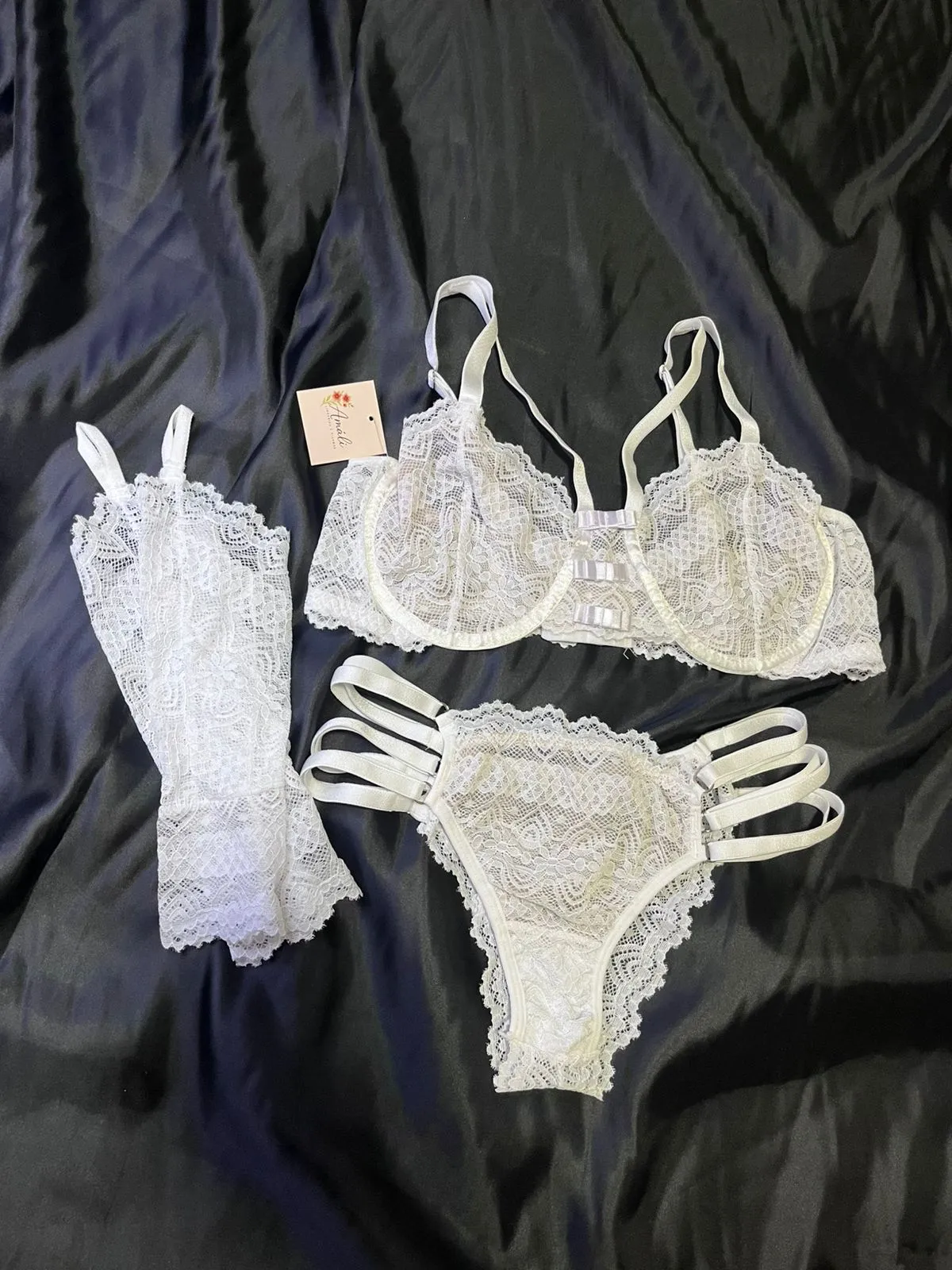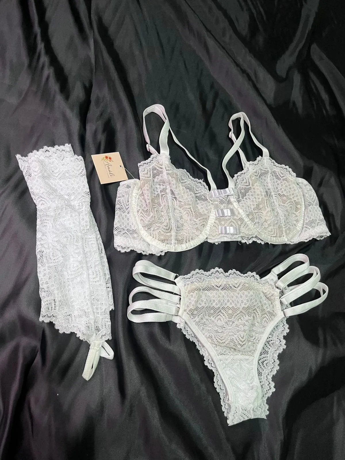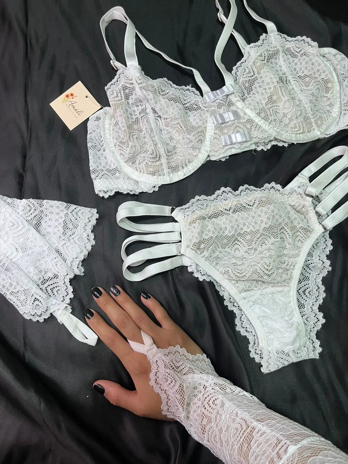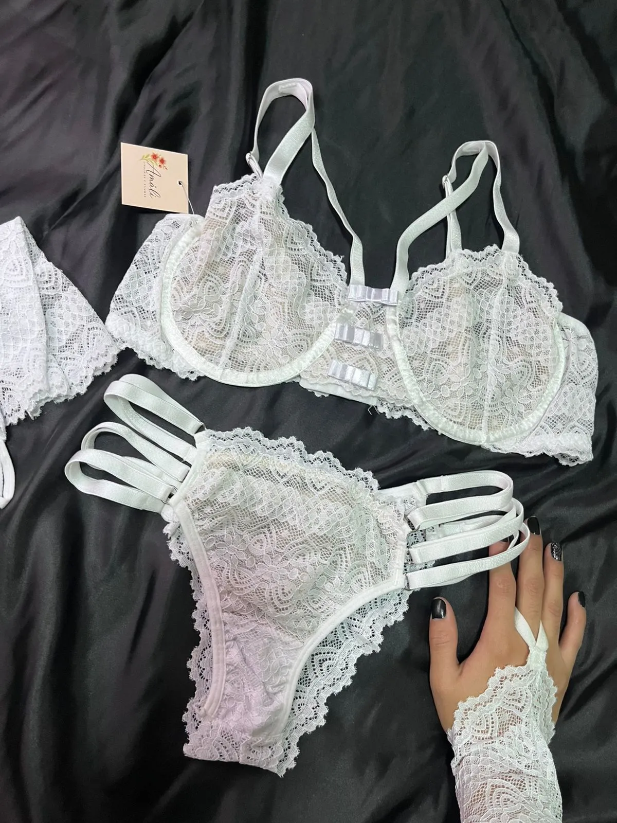 O Conjunto Pérola é a escolha ideal para quem busca delicadeza, sensualidade e leveza em uma lingerie sofisticada. Feito em tule e renda branca trabalhada, ele encanta pelos detalhes e pelo toque suave, proporcionando conforto e elegância em cada uso.