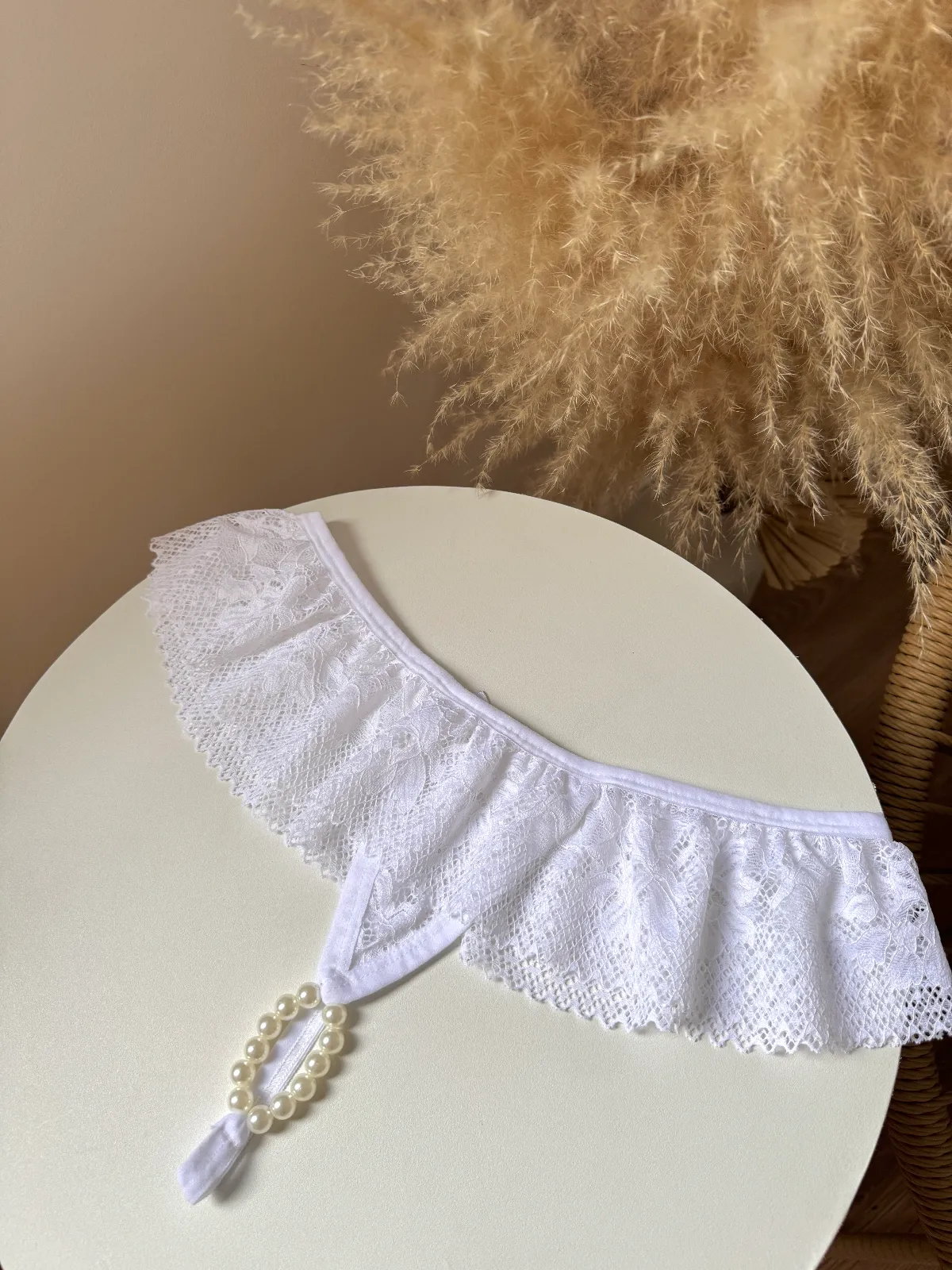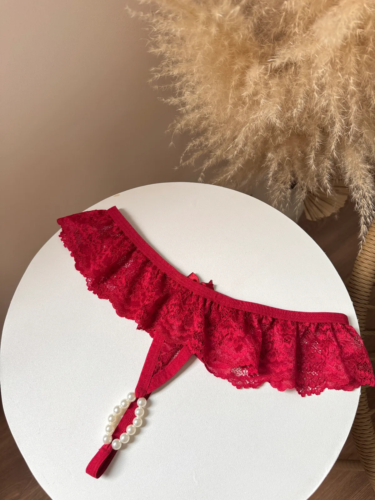 O detalhe de pĂ©rolas na parte Ăntima adiciona um toque de sofisticação e sensualidade, tornando essa peça perfeita para momentos especiais. A renda com babado traz leveza e movimento, criando um visual irresistĂvel e elegante.