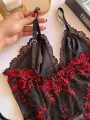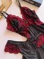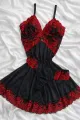 Camisola Elisa em Microfibra Ligalight e Renda - Preto com Renda Vermelha