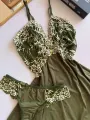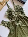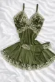 Camisola Elisa em Microfibra Ligalight e Renda - Verde Oliva com Renda Branca