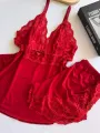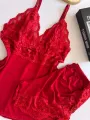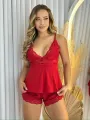 Baby Doll Elisa em Microfibra Ligalight e Renda - Vermelho Liso